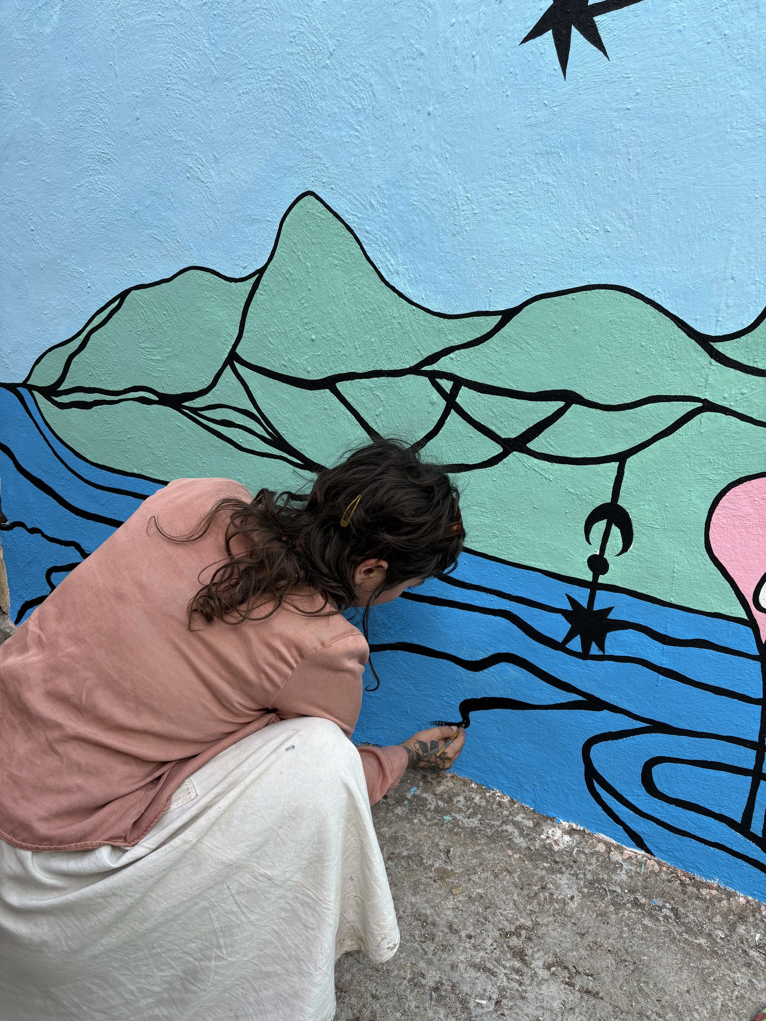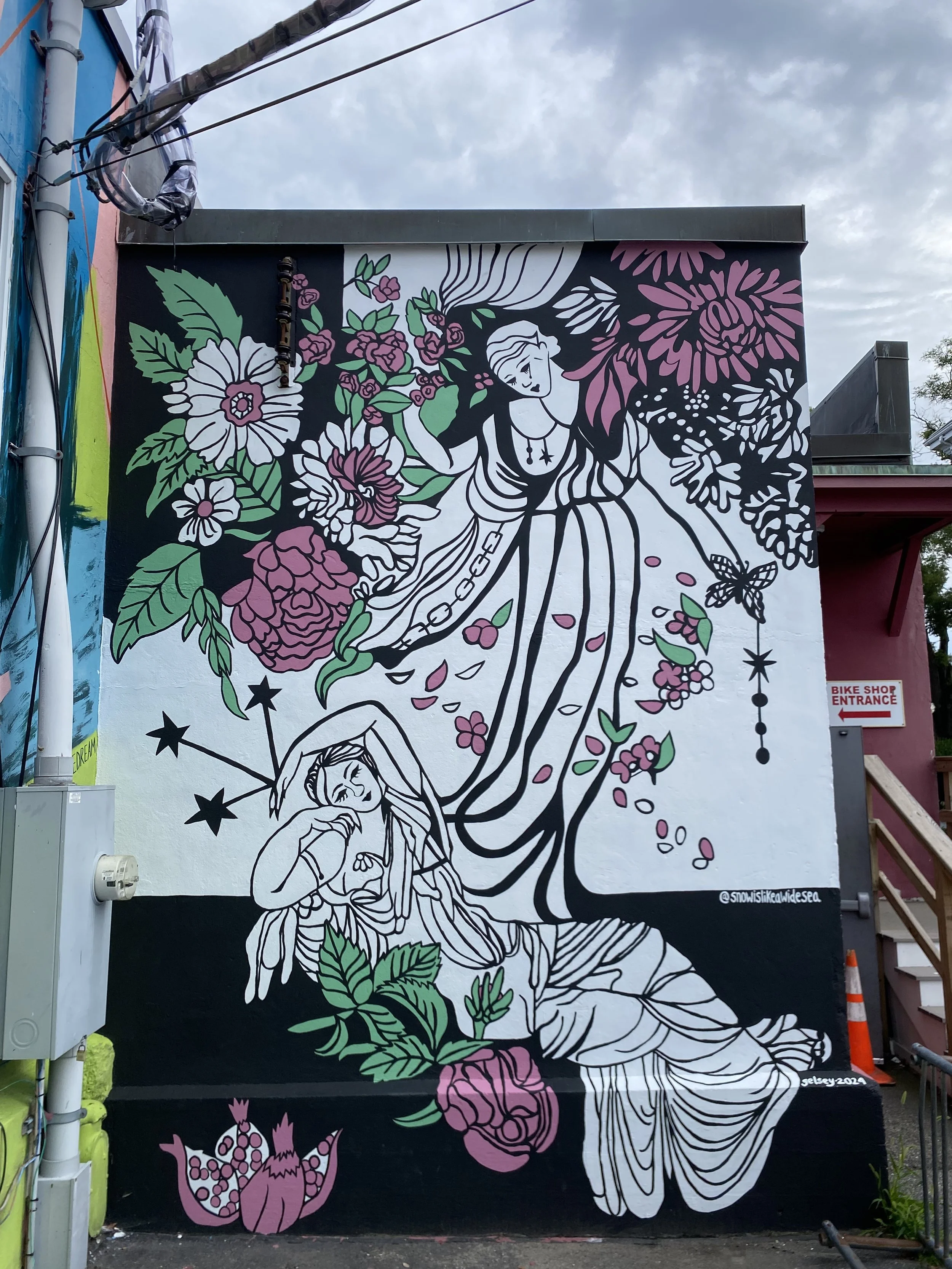 Mural in the bathroom at Space Gallery in Portland, ME. Completed Spring 2024